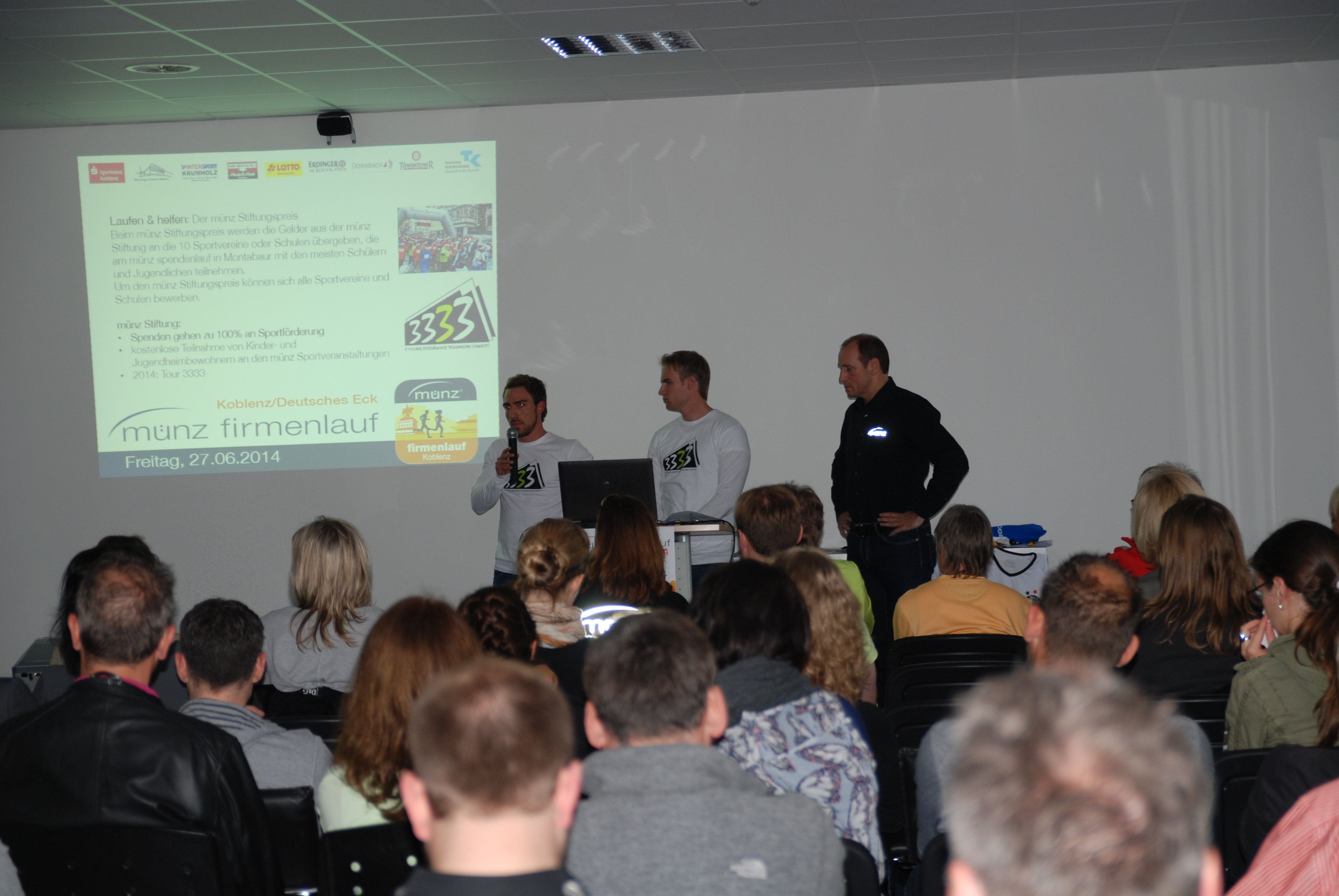 Am Donnerstag, den 08.05., fand in den Räumlichkeiten des intersport-Krumholz in Mülheim-Kärlich das Teamcaptainmeeting des diesjährigen münz-Firmenlaufs in Koblenz statt! Dort wurde den sportlichen Vertretern der teilnehmenden Unternehmen alles rund um die Organisation sowie der Ablauf des Riesenevents am 27.06.14 vorgestellt.