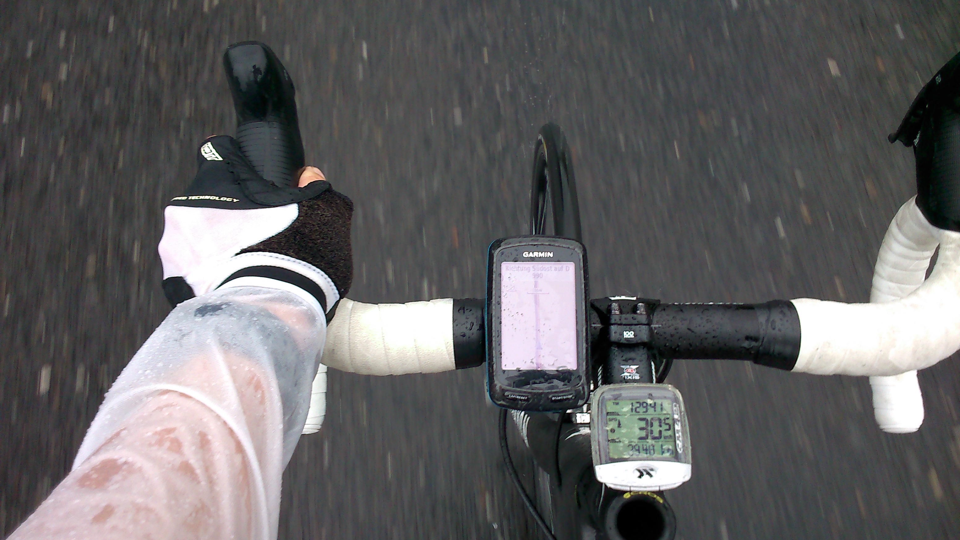 So konnten wir heute loslegen, mit GPS natürlich. Nass, trocken, trocken. So kann man die Dreiteilung der 190 km heute festhalten. Schöne Dörfer, schon ansprechende Anstiege und eine Zielankunft am Stadion von Olympique Lyonnaise. So sah die Etappe „Kanzlei Beul & Klatt“, Steuerberater- und Wirtschaftsprüferbüro aus Neuwied, aus. Adrian musste sich erkältungsbedingt ersteinmal zurücknehmen. Er wird aber gut von uns umsorgt :)!