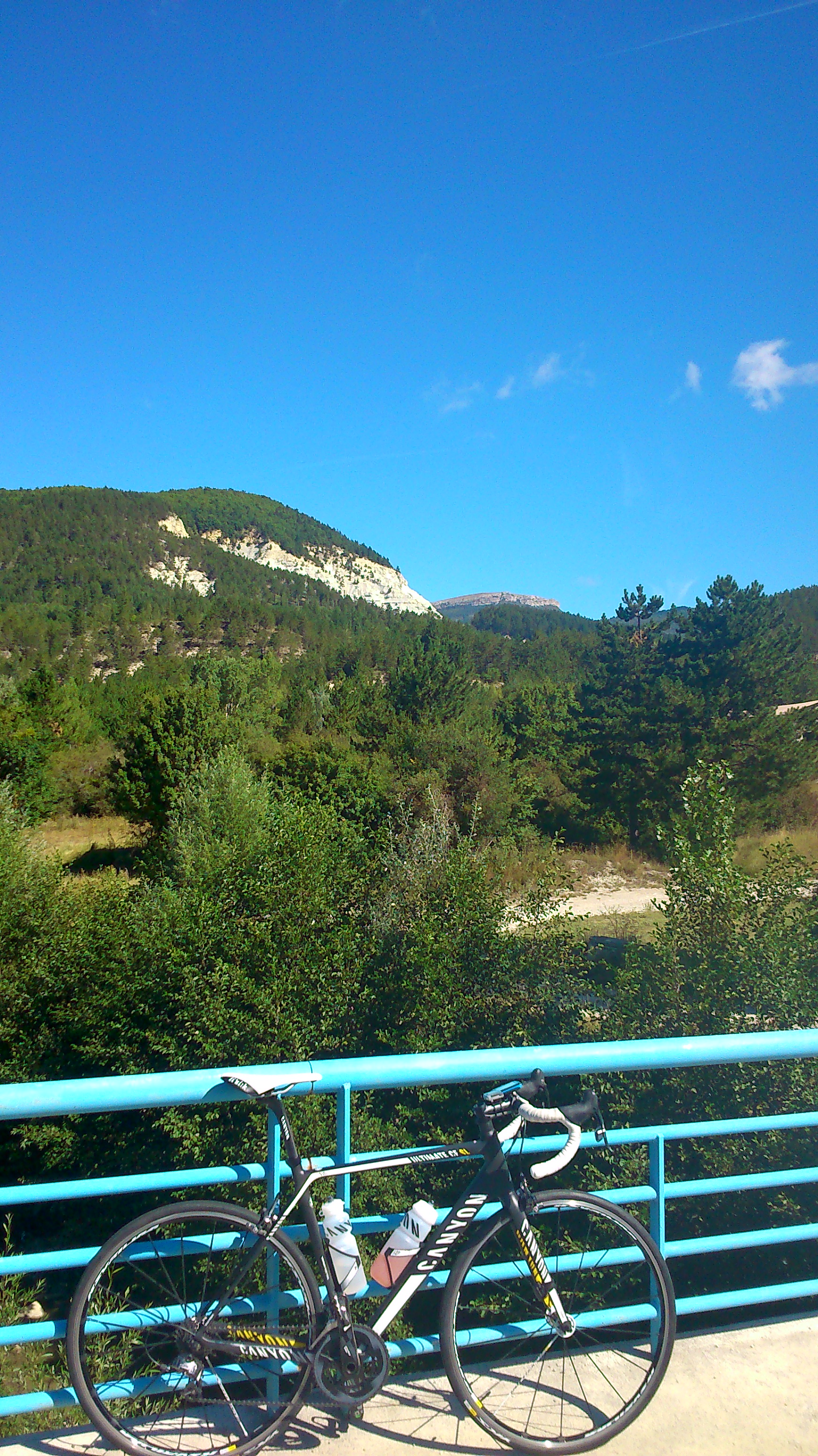 Die Strecke verlief somit abwechslungsreich. Die Landschaft einfach traumhaft, vorbei an Montbrun-les-Bains, einer Stadt, die sich wie in Stein gemeißelt am Hang von ihrer prächtigen Seite zeigte. Nach dem ersten Anstieg Richtung Macuègne gelang man in ein Tal bei Calandre, in der Nähe von Sisteron, einem Gebiet, wo Segelflieger sowie Gleitschirmflieger an den Hängen wie z.B. dem Gache die Aufwinde nutzen.