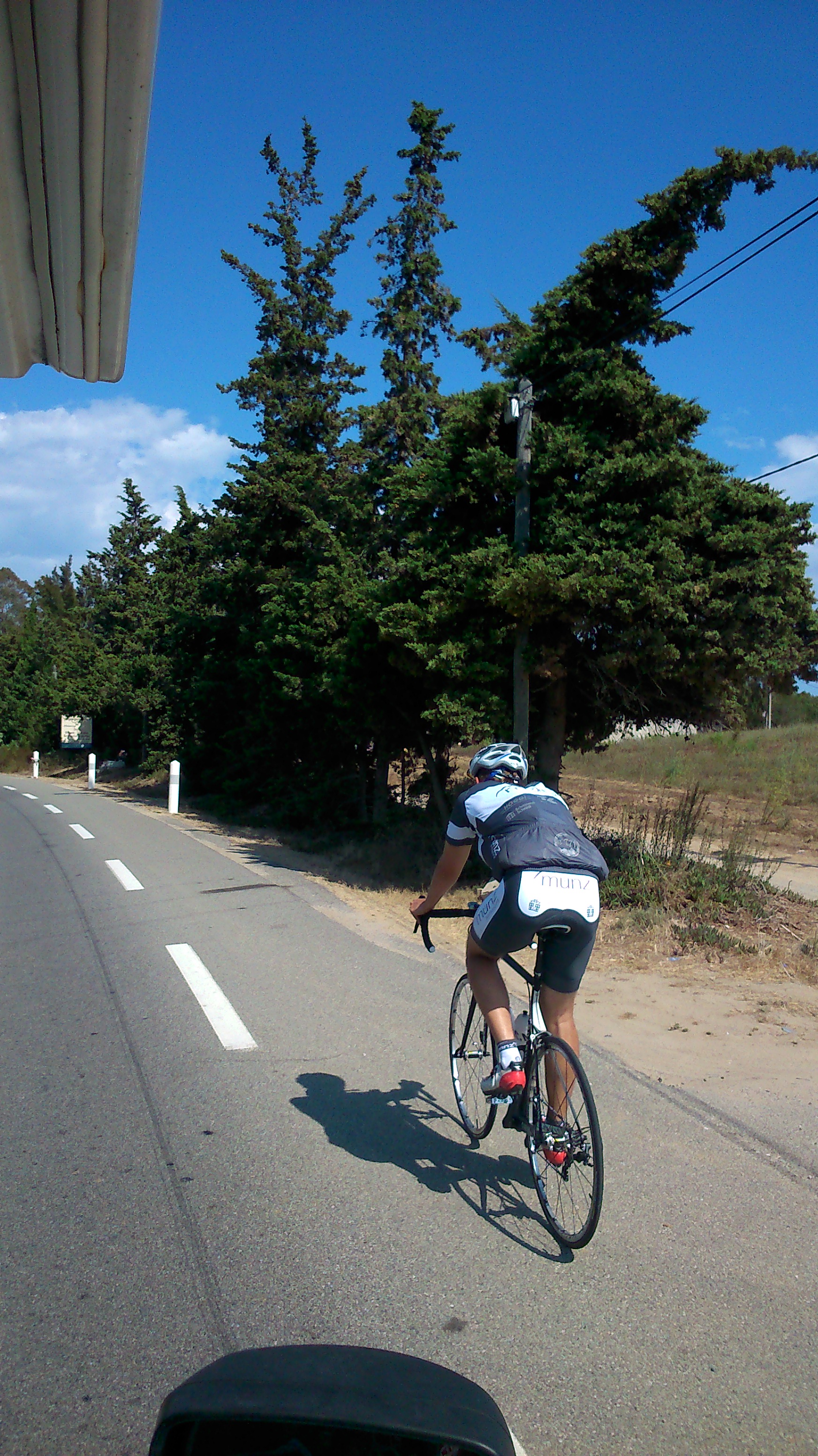 Nach der nötigen Erholung absolvierten wir am gestrigen Donnerstag die letzte Etappe auf Korsika. Sie führte uns zunächst nach Porto Vecchio. Von dort aus fuhr Marcel eine große Schleife gen Süden, nach Bonifacio, am Fuße des Bavella Massivs entlang. Nach nur sieben Kilometern kam er dann doch wieder. Schon längst in uns nach der Bretagne verdrängt, platzte er aus allen Wolken heraus. Niederschlag, den Marci so noch nicht während der Tour mitbekommen hatte. Nach ständigem Wechsel zwischen Regen und warmer Sonne erreichte er nach 75 km den Wechselpunkt, wo Adrian für die folgenden 75 km übernahm. Er wurde hinsichtlich des Wetters verschont. Fabian übernahm die letzten 55 km, um in Bastia an der Strandpromenade die letzte Etappe auf Korsika für uns zu beenden. Relativ flach verlief die Strecke überwiegend in der Nähe zum Meer auf der Ostseite der Insel. Die insgesamt 204 km waren dadurch zügig abzufahren und wir kamen mit einem 2 1/2 Std Puffer an der Fähre an. Um 20:00 Uhr legte diese ab.