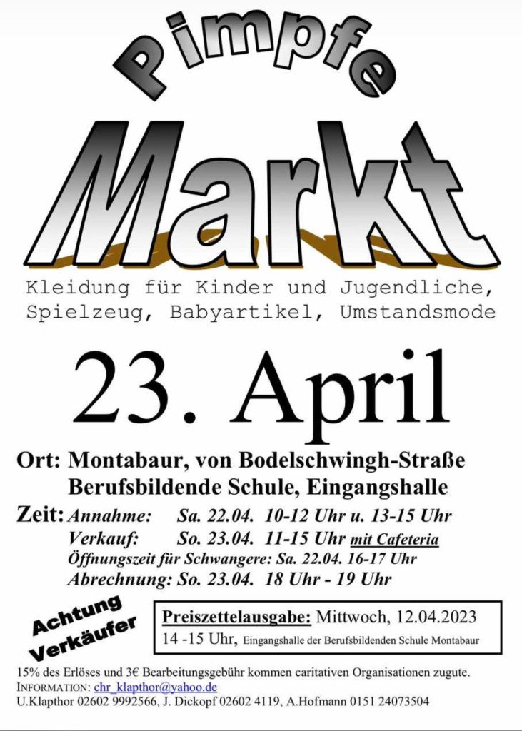 Nach zwei Jahren coronabedingter Pause findet am Sonntag, den 23. April 2023, wieder der Pimpfemarkt in Montabaur statt.